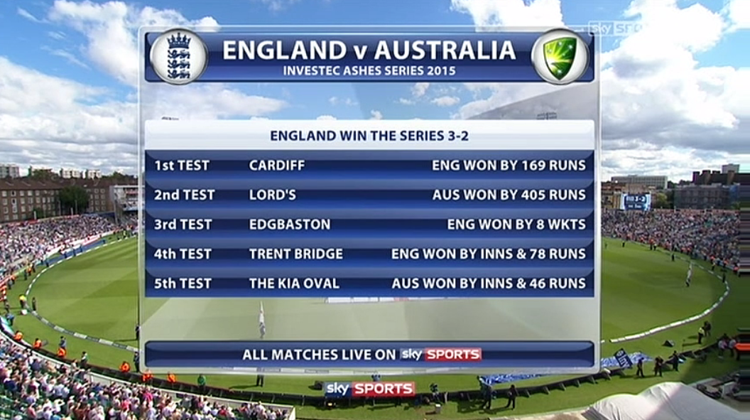 I think a large part of the reason why these matches were so one-sided was simply down to poor batting on both sides. Joe Root (57.50) was the only English batsman to finish with an average above 40 in the series. Cook (36.66) and Moeen Ali (36.62) were the only others to average above 30. For Australia, Rogers (60.00), Smith (56.44) and Warner (46.44) finished with averages above 40, but no other batsman had an average of 30.